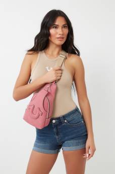 faux suede stitched sling bag